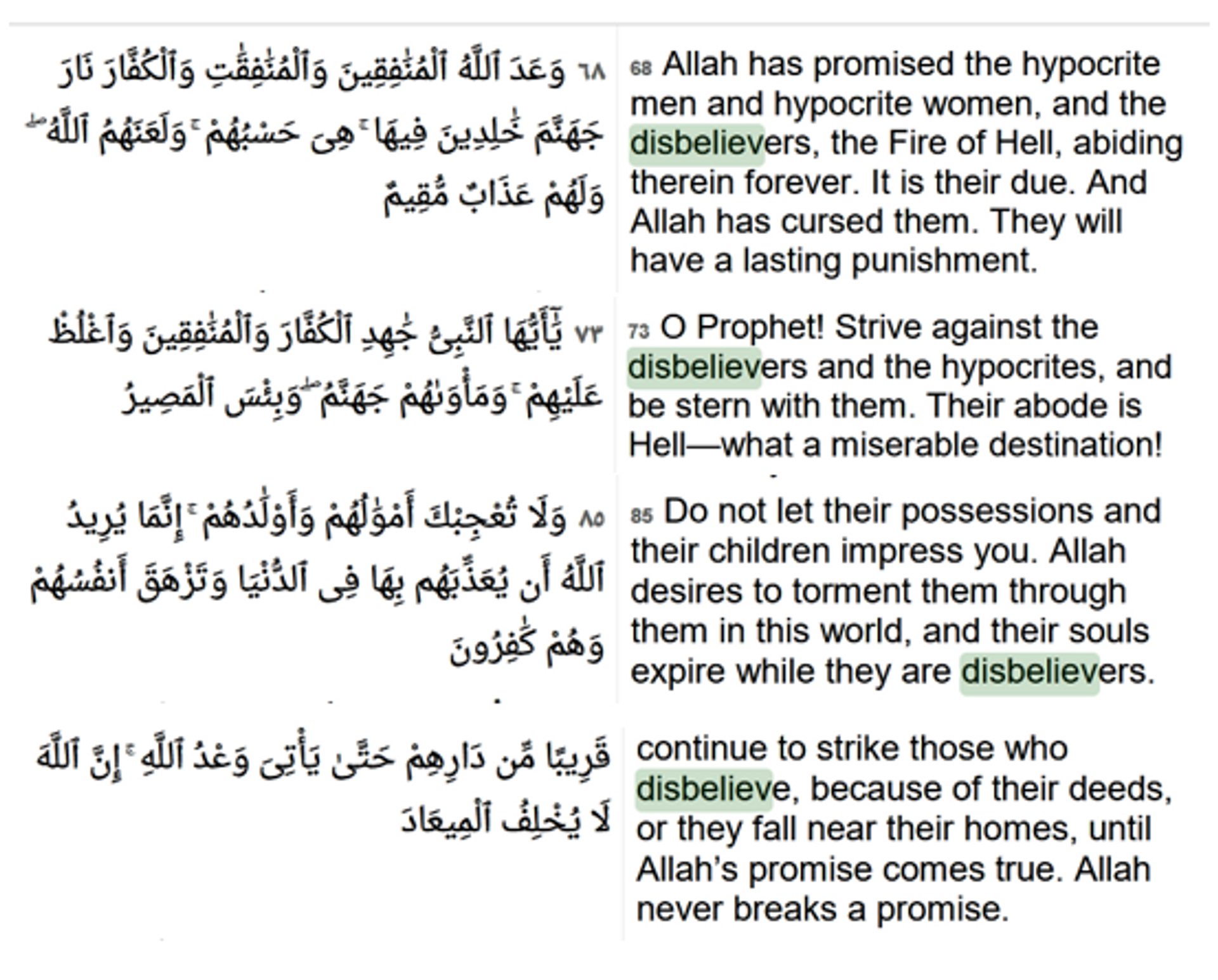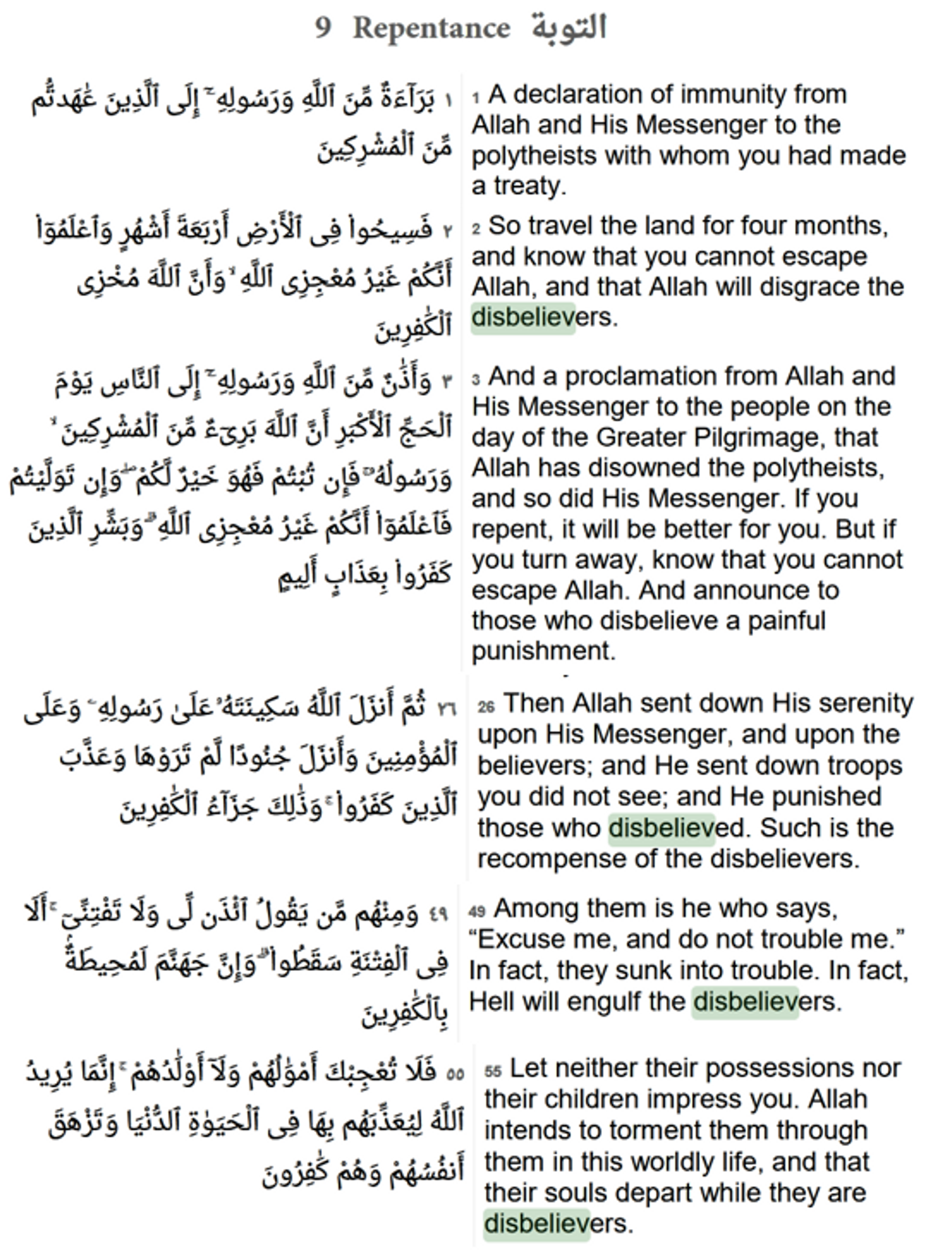 Quran Chapter 3, Verses 10,