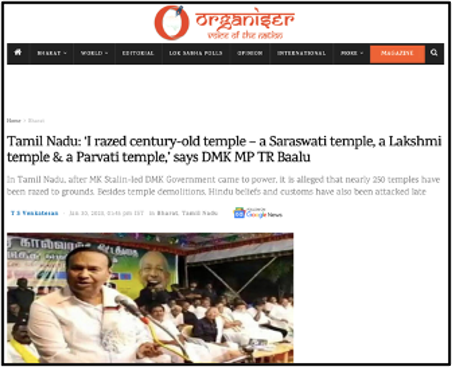 There are several reports of it as shown below. There have been confirmed report of temple vandalization and destruction numbering 250 as per some reports but authentic numbers of recently destroyed temples are unknown. In short, it can be said with reasonable truth and conviction that TN state govt is anti-Hindu by both words & deeds. Sooner or later they may have to face the heat of reaction / retaliation.