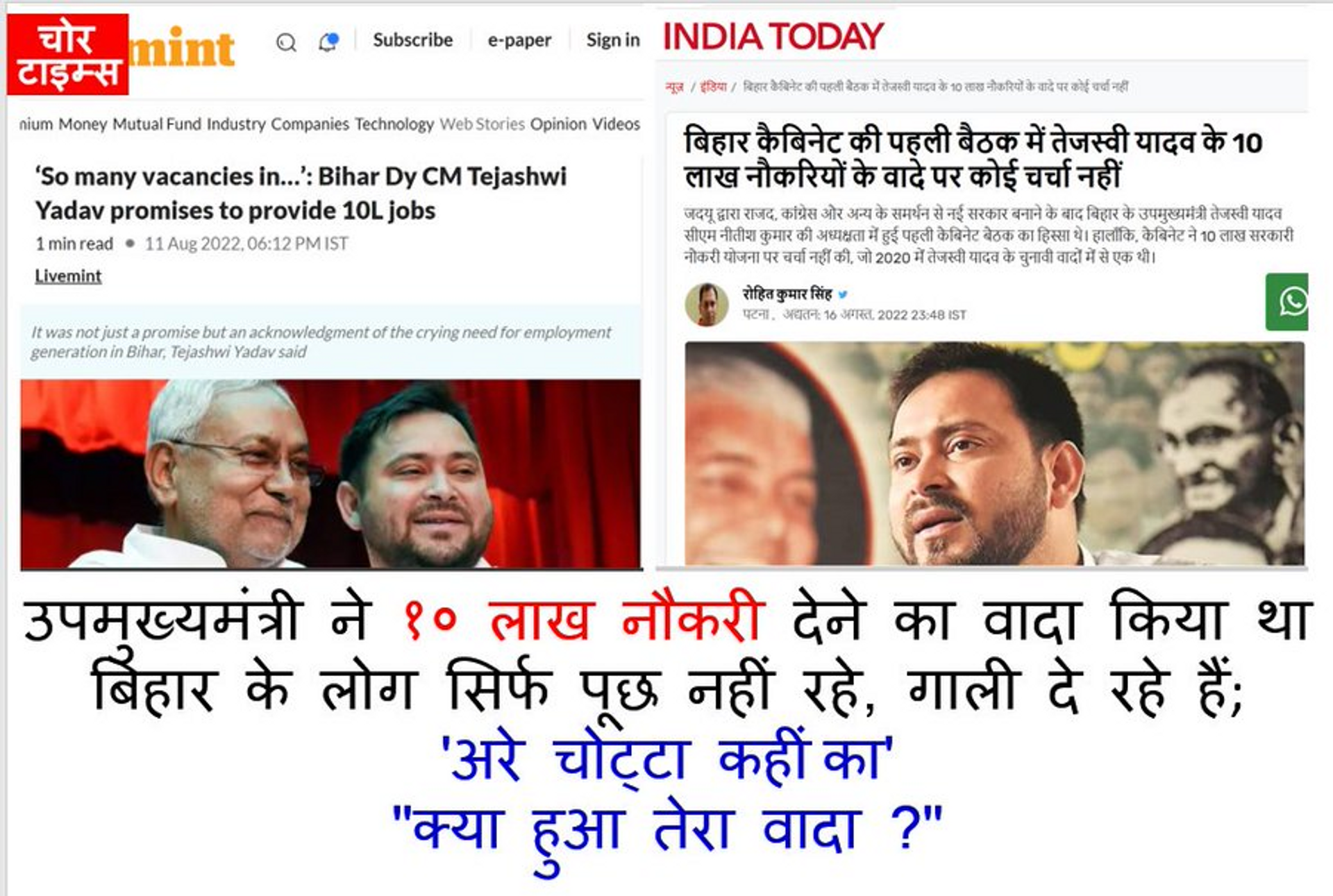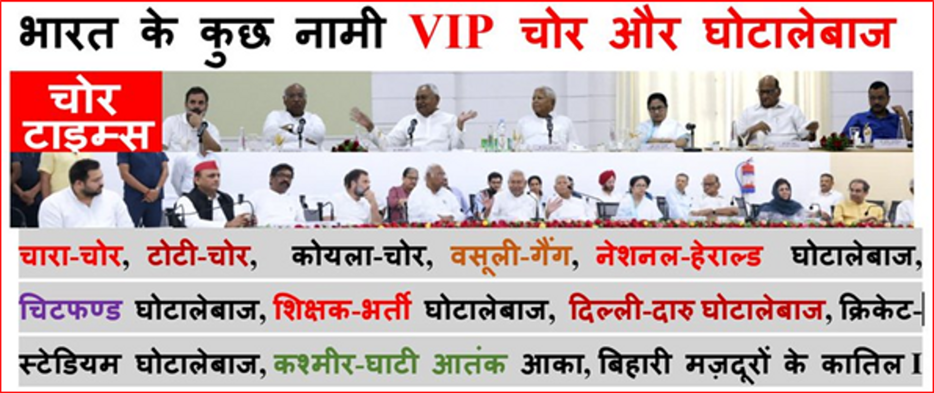 पिछले कुछ महीनों से बिहार के मुख्यमंत्री अपनी मृगतृष्णा की तलाश में बिहार को अपनी दुर्गति में छोड़, देश के तथाकथित सारे महाचोरों को इकट्ठा करने में लगे है कि किसी तरह मोदी जी को हराया जाय और वे प्रघान मंत्री बन सकें।आजकल तथाकथित VIP चोरों का गठबंधन बनाने की खबर जोर शोर पर है जिसमें एक से बढ़कर एक महत्वाकांक्षी व्यक्ति अपनीं अभिलाषा पूरा करने की फिराक में लगा है।