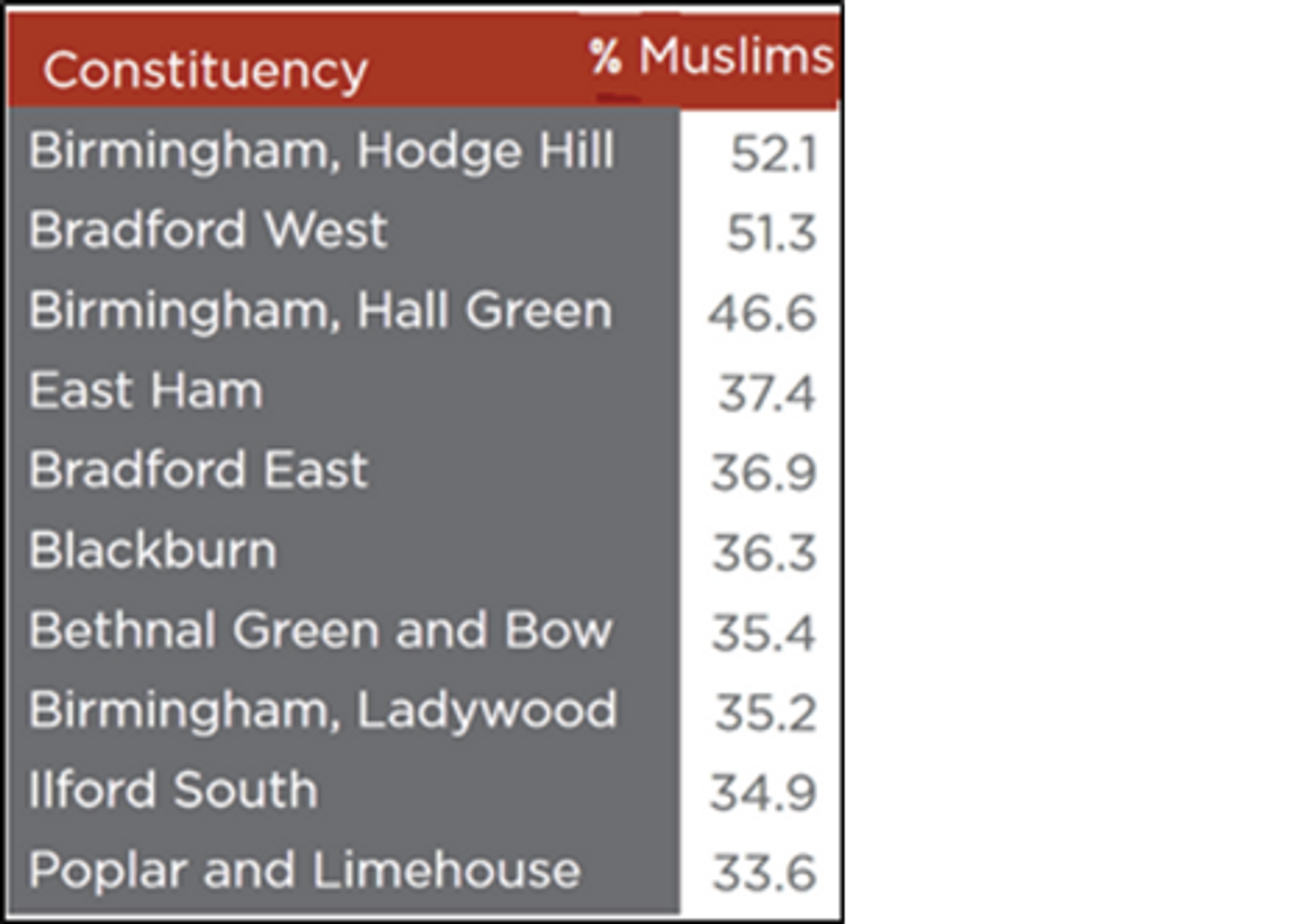 As shown in the figure above, Muslim ghettos in Birmingham, Bradford, East Ham, Blackburn, Bethnal, Ilford and Poplar & Limehouse are increasingly becoming law & order problem for the British administration.