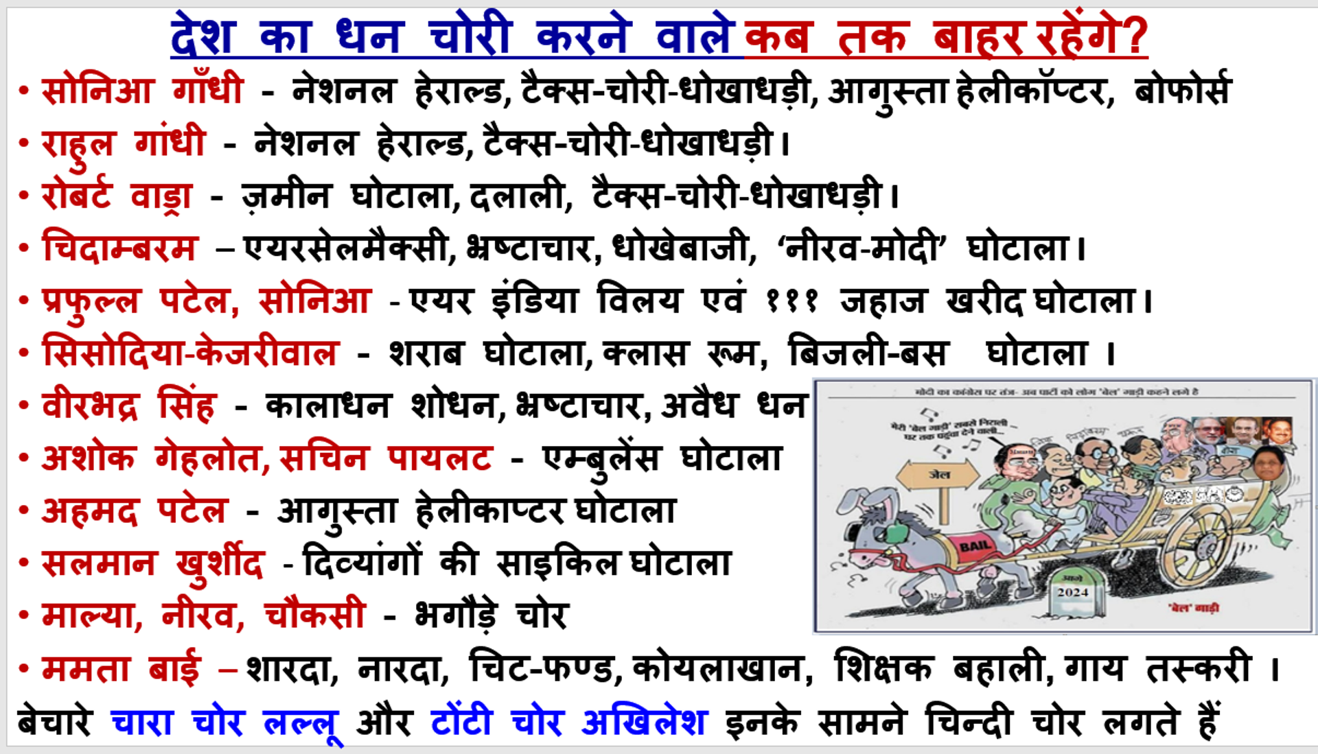 Corrupt politicians seem unnerved to have been raided, caught with disproportionate cash & assets, booked, convicted and jailed too. Recent conviction and jail of the corrupt politicians is praiseworthy; be it RJD’s Lalu Yadav; Congress’s Chidambaram and Sivakumar; NCP’s Anil Deshmukh, Nawab malik and Mushrif; Shiv Sena’s Chhagan Bhujbal and Sanjay Raut etc, etc. Whatever may be the stash cash collected, ED under Modi Govt has surely broken the myth that “politicians cannot be jailed”. The corrupt politicians finally seem to be heading to jail although many have managed to get bail from the courts on the strength of their money powers to hire high-profile lawyers who are experts in finding loopholes in the judicial system.