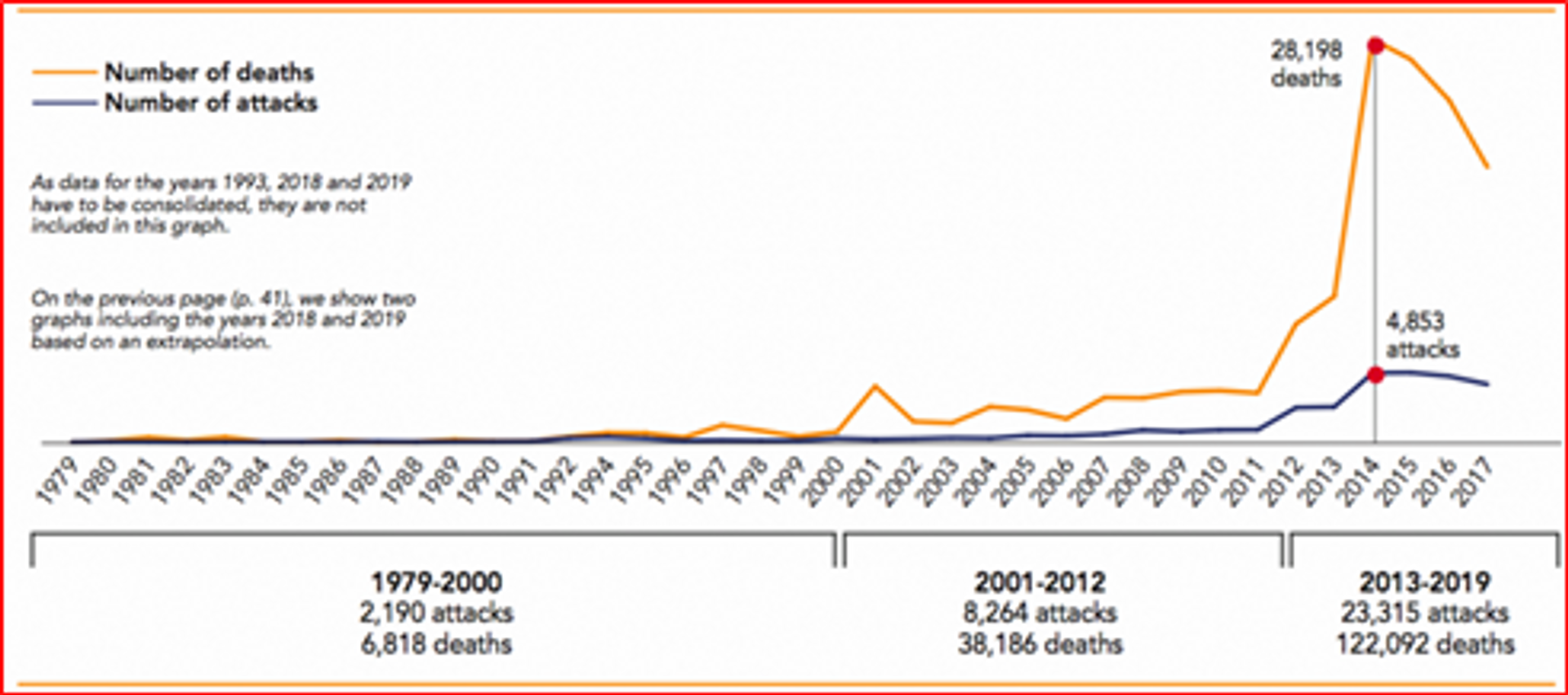The immense loss of lives and properties caused by the Jihadists in several parts of the world has been going on for decades but none have sounded for compensations by the sponsors of the terror. Their 9/11 attack in US, 26/11 in Mumbai, Church attacks in Sri Lanka, the horrific attacks on Peshawar school in Pakistan, several schools in Afghanistan, the Middle East, Nigeria, Sudan, CAR, Somalia, ISIS barbarism, many genocides in the mane of Islam etc…the list is exhaustive (read 'Major Islamic Jihadi Attacks in the World' https://articles.thecounterviews.com/articles/major-islamic-jihadi-attacks-in-the-world/). The official figures of Jihadi attacks and deaths are believed to be minuscule of the actuals, yet it is disturbingly high as shown in the figure below:-
