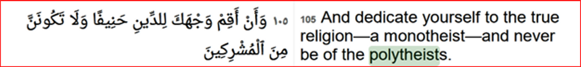 Chapter 10 ‘Jonah’, verse 105 again demeans and discredits the religion of polytheism. How can this verse of Quran be preached in nations where polytheism is preached and practised? Claiming that monotheism is true religion, Quran discredits Hinduism..