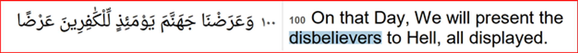Chapter 18 ‘The Cave’, verse 100 is discriminatory, and hateful towards the believers of Gods other than Allah. All such verses that announce hell, fire, torments etc to the non-Muslims only because of their faith don't deserve to be preached in nations where all religions are regarded as equals.
