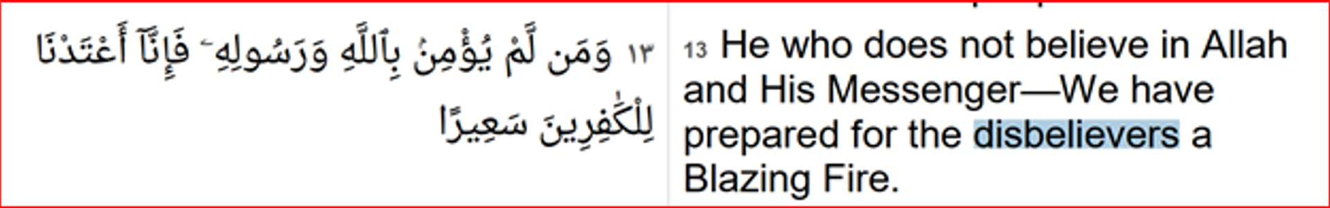 The readers are cautioned not to go by the simple and moderated English translations having deliberately mellowed the tone and tenor of ‘hate and incitement’ to avoid catching eyes of the laws. However, the Arabic verses are extremely divisive although some having dual meanings too; eg hateful if explained by the ultra-radical Imams and mild if explained to prove it non-intolerant.
