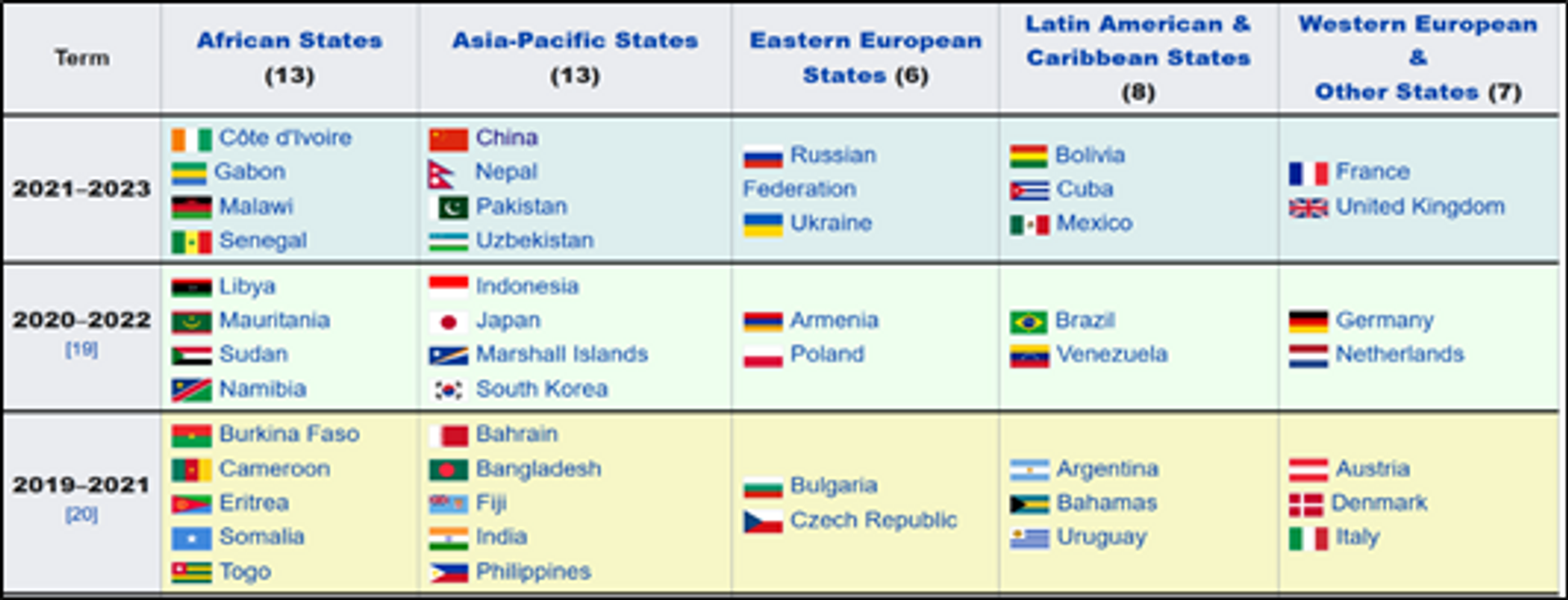 In the present 47 member’s representative of the UNHRC, various continental groups of Asia-Pacific, Europe-US, Africa and Latin America find the representation as shown in the table below. Every member has one vote irrespective of them representing the size of their population and that is highly discriminatory. China & India both having ~140 Cr population have one vote each as have the 38 smaller nations each having a population of <1 lakh. Hence, in any council, if Indian or Chinese members don’t find their representation, it will be an injustice to the huge numbers of the men and women they have in their territories, for redressing the major concerns of their Rights. The present constitution of the UNHRC is given below. It is apparent that from 2022 onwards, India having 1/6th of world population will not be represented in the then UNHRC. It will be a huge injustice to their huge population.