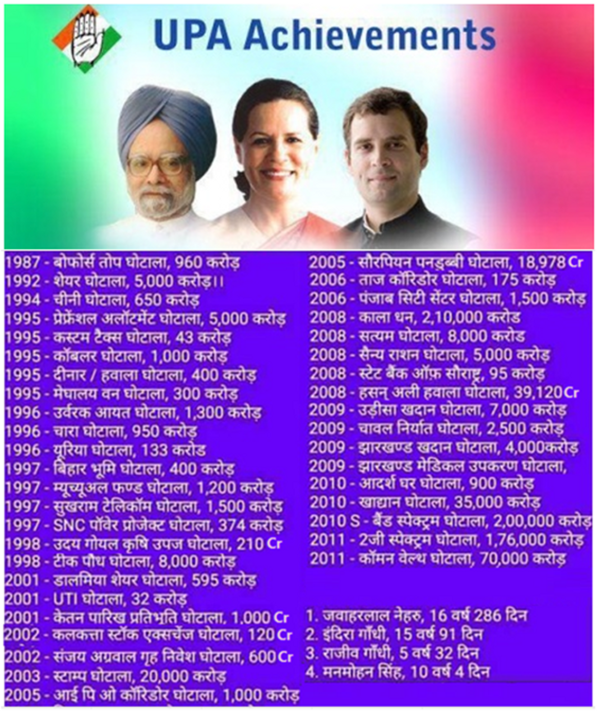 On the governance side, there is hardly anything for the Congress Party of India to claim credit for. India was $1.7 Tn economy and considered as fragile five when they handed over the governance to Modi in 2014. There was a policy paralysis and the PM was believed to be operating on remote control from 10, Janpath. India had very little credibility abroad. Armed Forces were in total neglect on the modernization front. Poverty, unemployment, lack of development, the poor state of the Agri-sector, rising suicides of farmers, lack of new industries, rising inflation, falling standard of living, rising Islamic radicalization & terrorism, persecution of SC & ST etc were the common features except for a small flicker of light of ‘economic revival’ in Narsimha Rao’s time. Nehru and Indira doomed India with “pseudo-secularism’ which has been covertly altering the religious demography at the cost of Hindus towards Islamisation of the nation. The Hindu voice was subdued and anyone claiming to be a Hindu on any major platform was tagged as communal. Of course, there were several credits too esp in Nehru, Indira, Rajiv and Narsimha Rao’s times but the dark chapters of their wrongdoings far acceded a few inspirational ones (read "विभाजन विभीषिका और राजनीति", https://thecounterviews.com/articles/partition-of-india-fallout-of/).