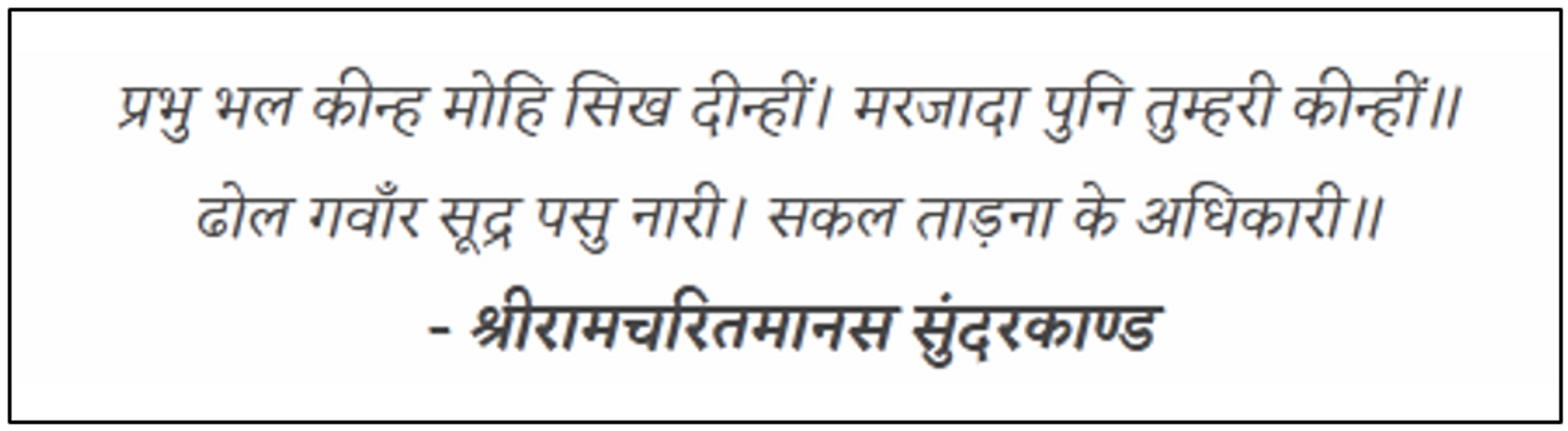 Women were the matter of objects in Mohamed’s time and remained so all through in the entire history of Islam. However, the extent of making them obeisant varies in different countries depending upon the culture of the original faiths, from where they were made to convert. As a result, the face of women in Islam varies to a large extent with the spread of Islam. Leaving exceptions, people of Indian Religions are peace-loving and for them a wife means life-partner. Veda, the foundation of humanity gives women the same status as that of men. In some specific roles, women have even higher status. It was the later Puranic period, when some basic rules of introducing discipline for women were incorporated that we find in the ‘Manusmriti’ too. Ramcharit manas written by saint Tulsidas during Islamic India shows degradation in the social fabric when he subscribed force against women especially in educating and for safeguarding modesty:-