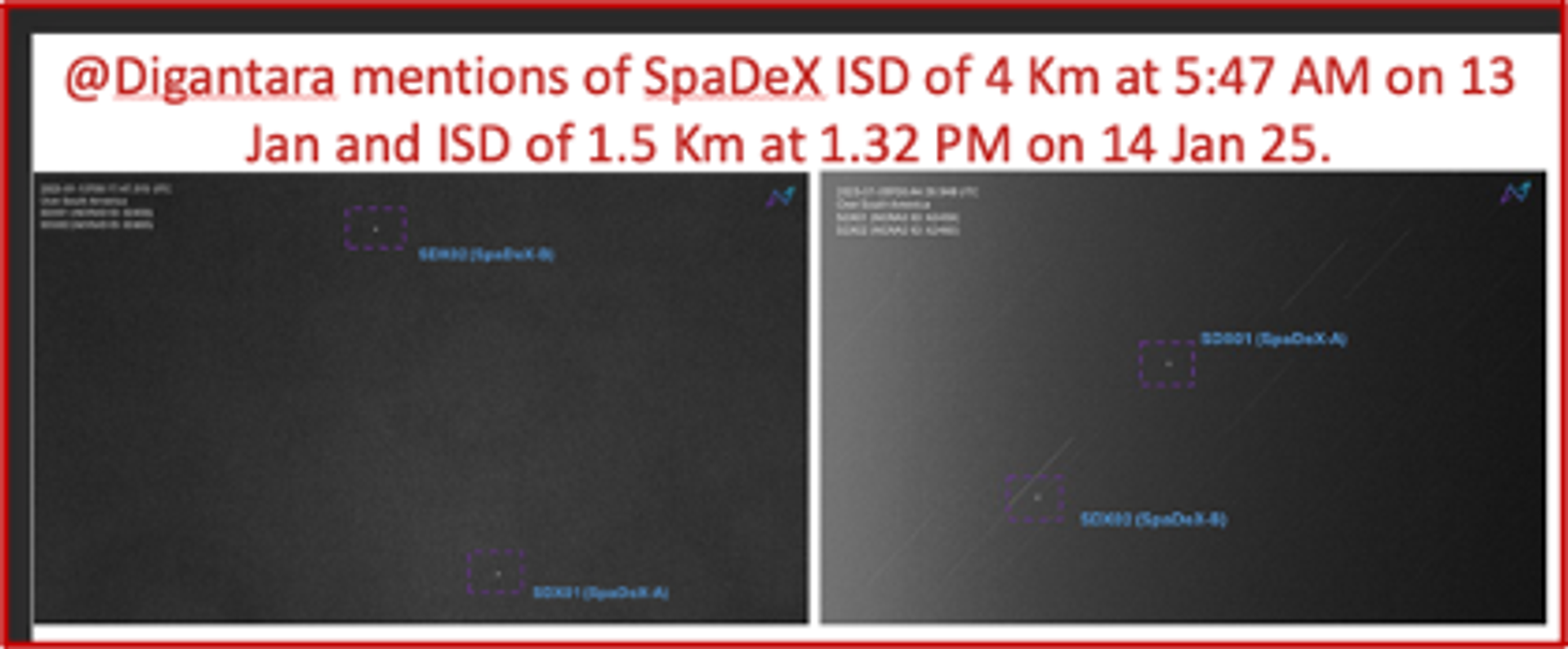 There was no update whatsoever from ISRO from 13-15 Jan 25 when two other Space agencies ‘Digantara’ an Indian start-up and ‘s2a systems’, a US space agency had created a flutter in India when they mentioned in social media ‘X’ that SpaDeX ISD on 13 Jan was 4 Km, 14 Jan 1.32 Km and 15 Jan 1.5 Km while making passes through their respective skies. ISD of both agencies were by and large matching BUT there was no comment or update from ISRO either confirming or denying their findings. If these data are correct, ISRO needs to do serious soul searching as to how its ISD drifted to as much as 4 Km on 13 Jan, 1.5 Km on 14thand 1.2 Km on 15 Jan 25 from the stated 3-meter separation that ISRO had mentioned on 12 Jan 25.