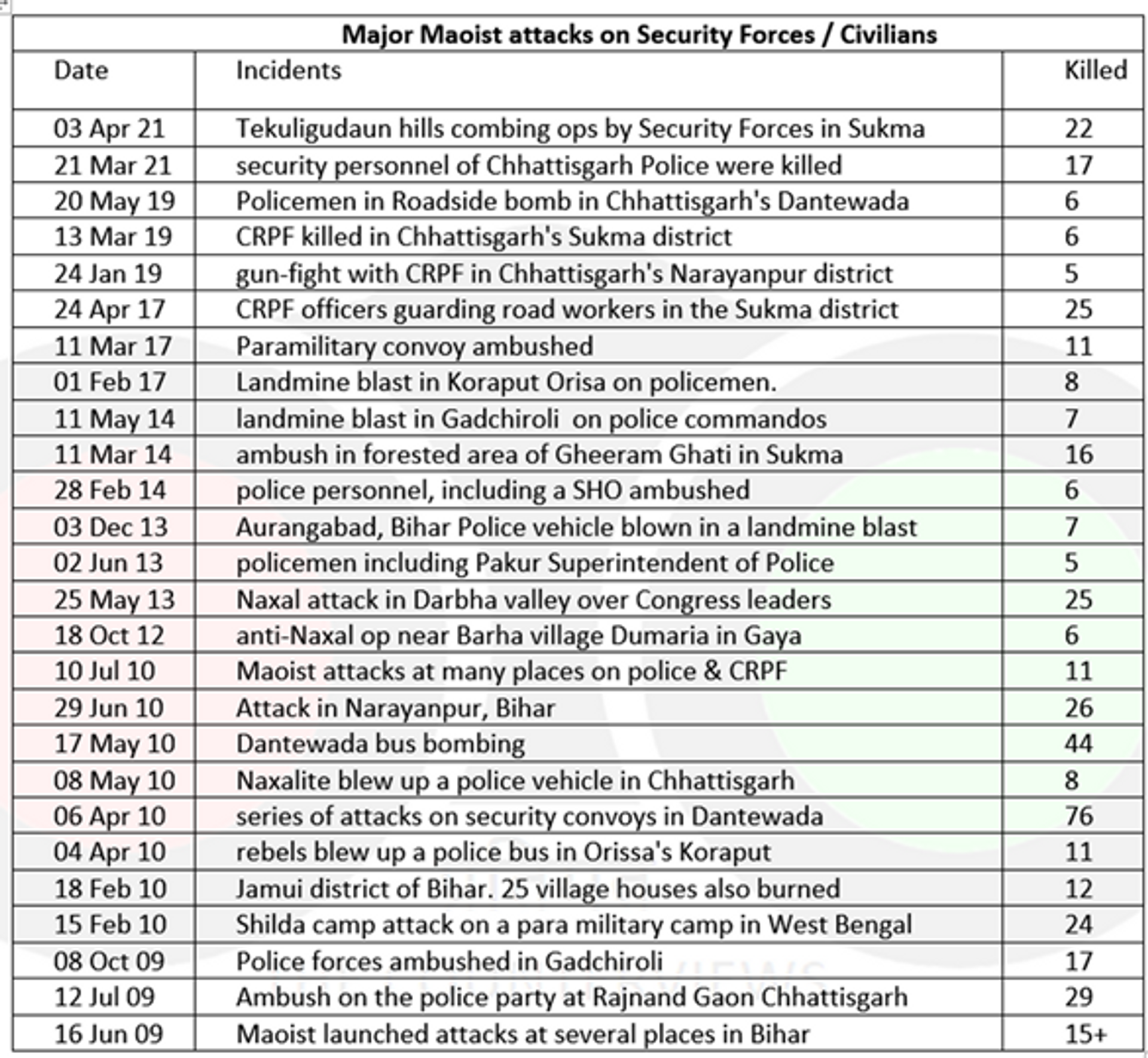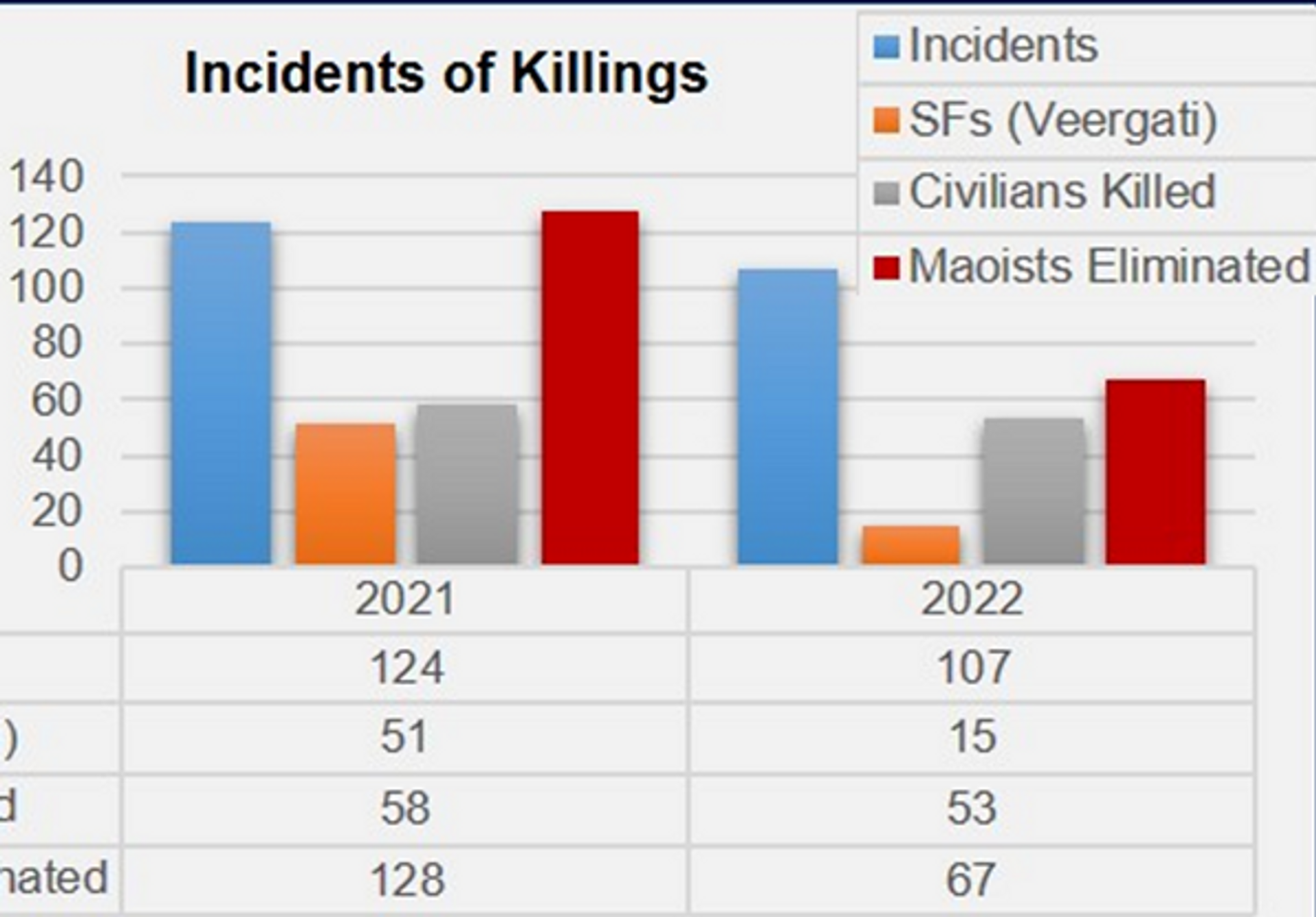 The activities of the Maoists in Chhattisgarh have apparently increased after the present Congress govt came to power in 2018. Year 2020 was a lull period possibly owing to the pandemic restrictions. It is a fact that after the April 2021 attack, there were some firm actions by the Union Home Ministry was the reason of a drop in the number of attacks in 2021-22. However, it will be grave mistake to assume that Naxal/Maoist violence is anywhere near end, as the Home Minister claimed. As long as their foot soldiers keep getting financial, administrative and political support from politicians and their parties, they will continue to thrive. It is another matter though that they are believed to be getting funding & weapon supplies from abroad (China, Pakistan).