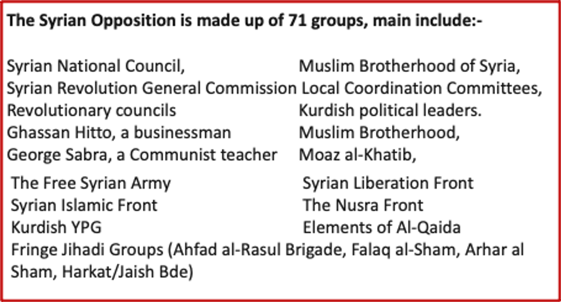 A largely stable Assad Govt in recent years in Syria has dramatically fallen in the hands of the Opposition Forces led by Jihadist organisations. The rapidity with which Assad govt has fallen like 7 pins, is unprecedented. Surrender of the govt forces in Idlib, Aleppo and Hama could be explained by military strategist that those cities had already had substantial presence of Jihadist Opposition, mainly Al-Julani-led Hayat Tahrir al Sham (HTS). In fact, this opposition has mainly the radical Sunni/Salafi groups consisting of 70-odd organisations as enumerated below. Most of these groups have been in existence since mid-2010s. They are funded from multiple sources, the main ones being USA, UK, France, Germany, Saudi, Qatar and the global United Islamic Jihad Council controlled by the OIC.